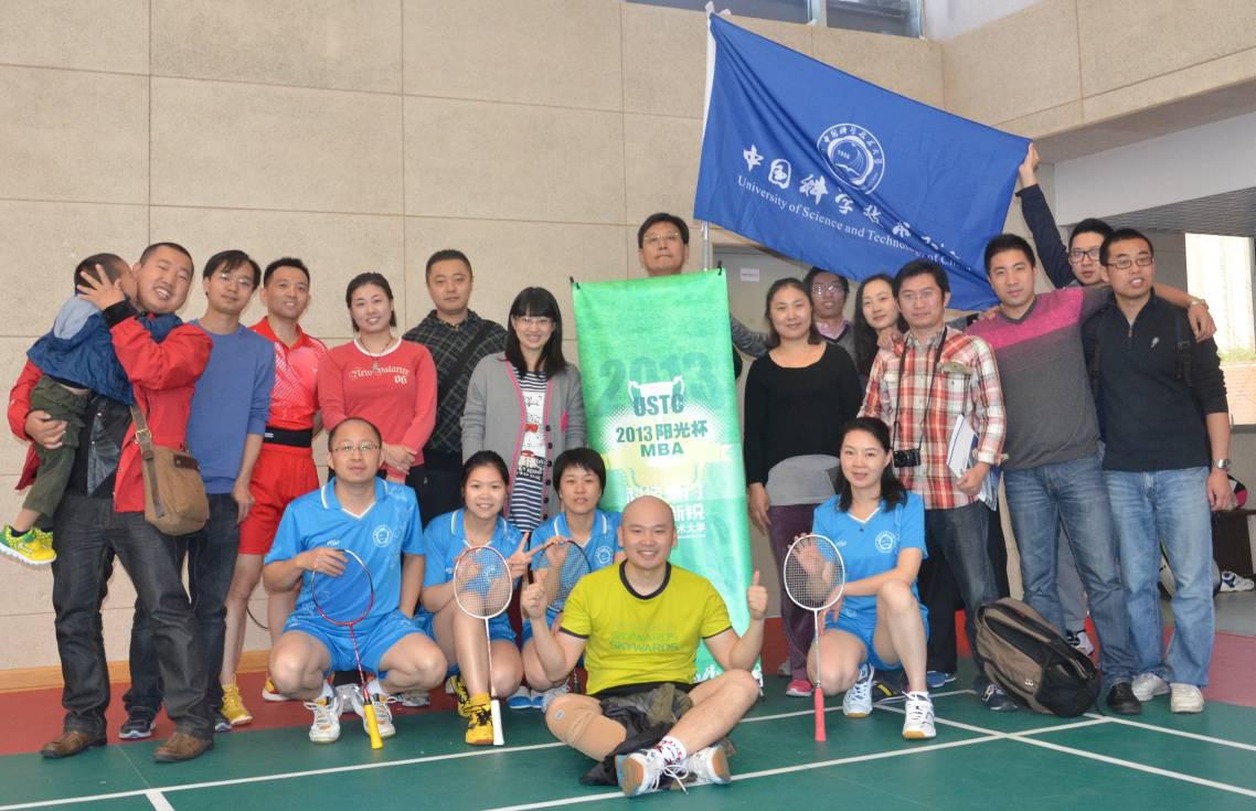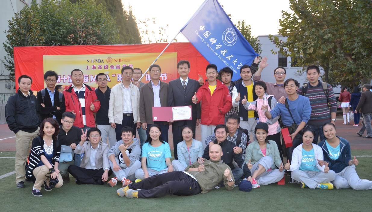 2013年第MBA10届上海MBA阳光杯体育节10月27日在交大高金学院落幕,中科大上海研究院MBA上海班(1310)代表中国科大首次参加了此次体育盛会。经过二周的激烈鏖战,首次参赛的中国科大,克服了人员少、时间短、经验不足的种种困难,凭一班力敌其余上海14所高校,豪取羽毛球亚军,拔河亚军,游泳、啦啦操第四,篮球、乒乓球进入八强惜败最后冠军,足球也取得了历史性突破,各顶比赛全面开花,获得了团体总分第四名优异成绩,并被授予最佳组织奖,不仅一战成名,更开创阳光杯开赛之先河!