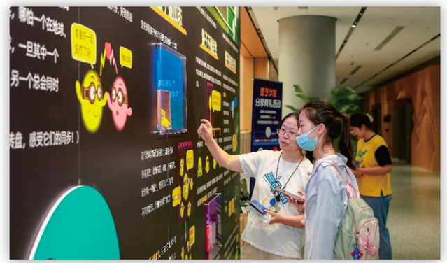 更值得称道的是,墨子沙龙在“让科学更好玩”上做足了文章。科学家不再只是讲台上的权威,更是短视频里幽默应答的“朋友”。8期“快问快答”视频累计播放近30万次;实验室不仅是科研重地,也成了艺术创作的灵感来源,与“In The Lab”团队合作拍摄的科研影像被制成实体照片墙,永久陈列于研究院走廊;在上海图书馆展出的“量子纠缠”科普漫画展, 以明亮可爱的视觉设计和互动转盘吸引超6000人参与。